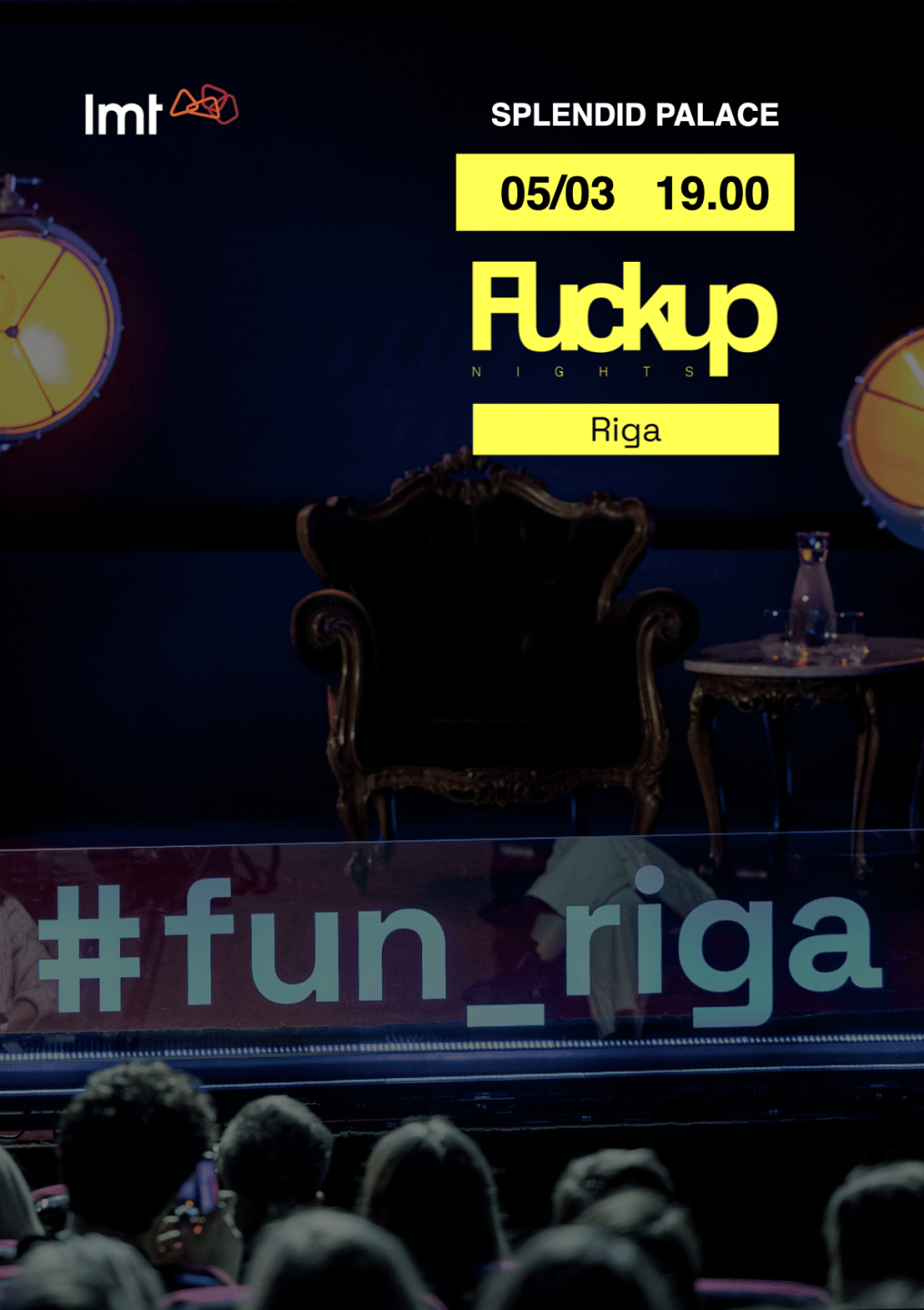 FuckUp Nights (FUN) Riga 32. pasākumā - 5.martā, plkst. 19:00, Splendid Palce, Elizabetes ielā 61, Rīgā.
