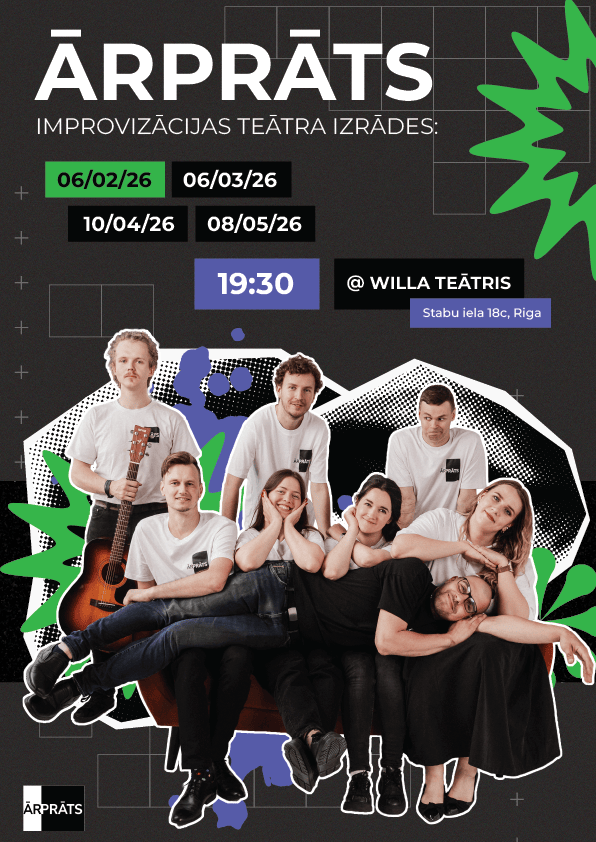 Improvizatoru apvienība "ĀrprāTS" ar vairāk nekā 10 gadu pieredzi uz skatuves piedāvā aizraujošu teātra pieredzi.