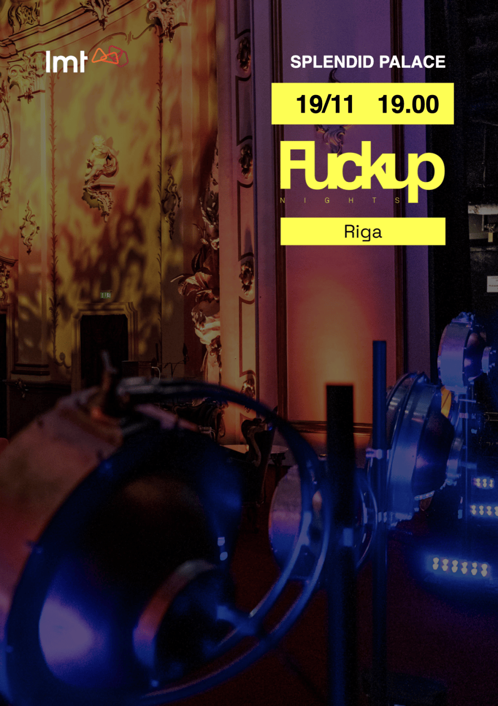 FuckUp Nights (FUN) Riga 35. pasākumā - 19.novembrī, plkst. 19:00, Splendid Palce, Elizabetes ielā 61, Rīgā.