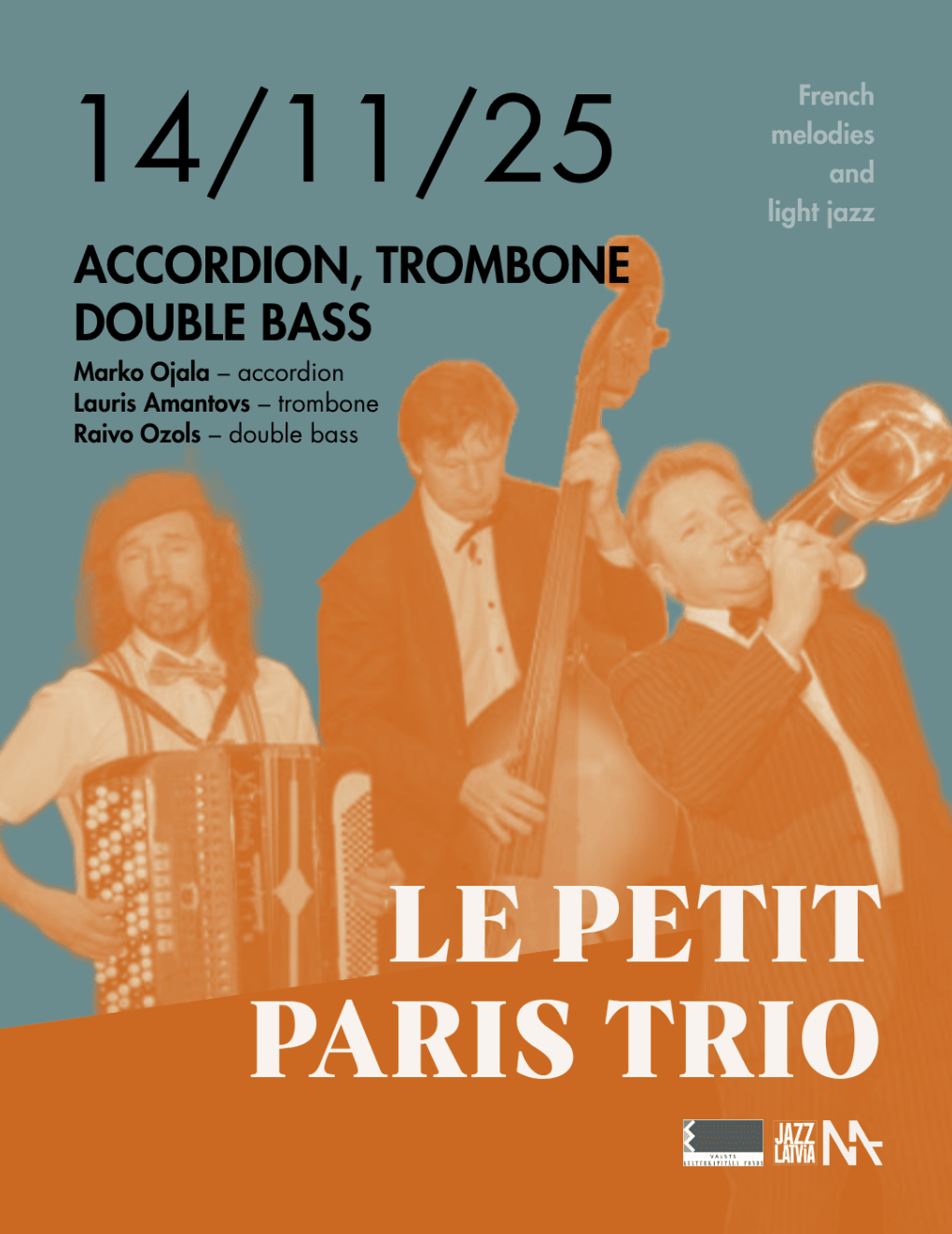 14. novembrī kultūrbārā MASA uzstāsies Le Petit Paris Trio – trīs starptautiski atzīti mūziķi, kas atvedīs līdz Rīgai franču melodijas un vieglu džezu ar īpašu uzmanību mūzikai no musette tradīcijas – tipiski parīziskajām harmonijām un noskaņām.