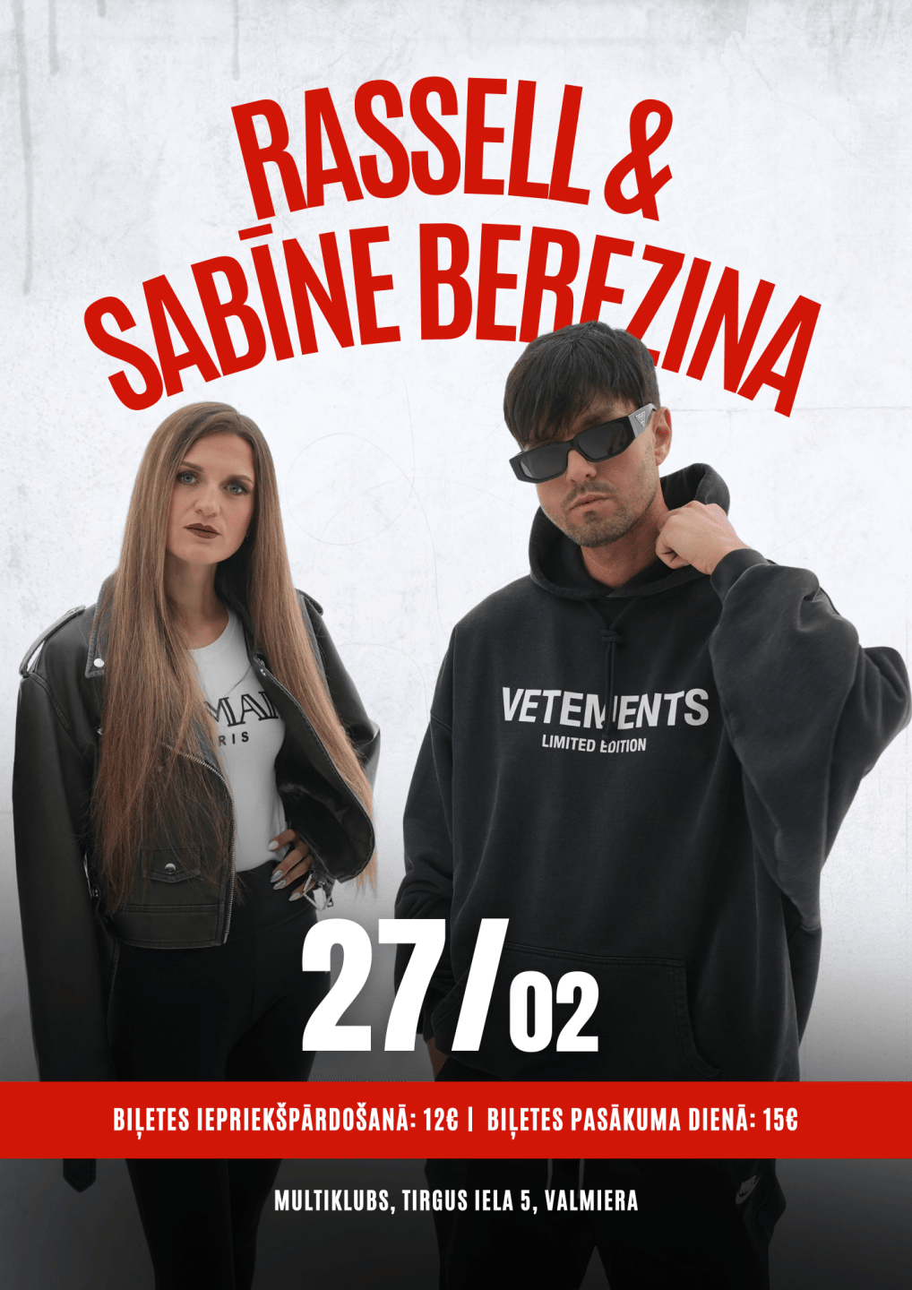 Jau 27. februārī uz Multikluba skatuves kāps Rassell & Sabīne Berezina – duets, kas jau daudzus gadus ieņem stabilu vietu Latvijas mūzikas scēnā un iekarojis plašas klausītāju simpātijas.
