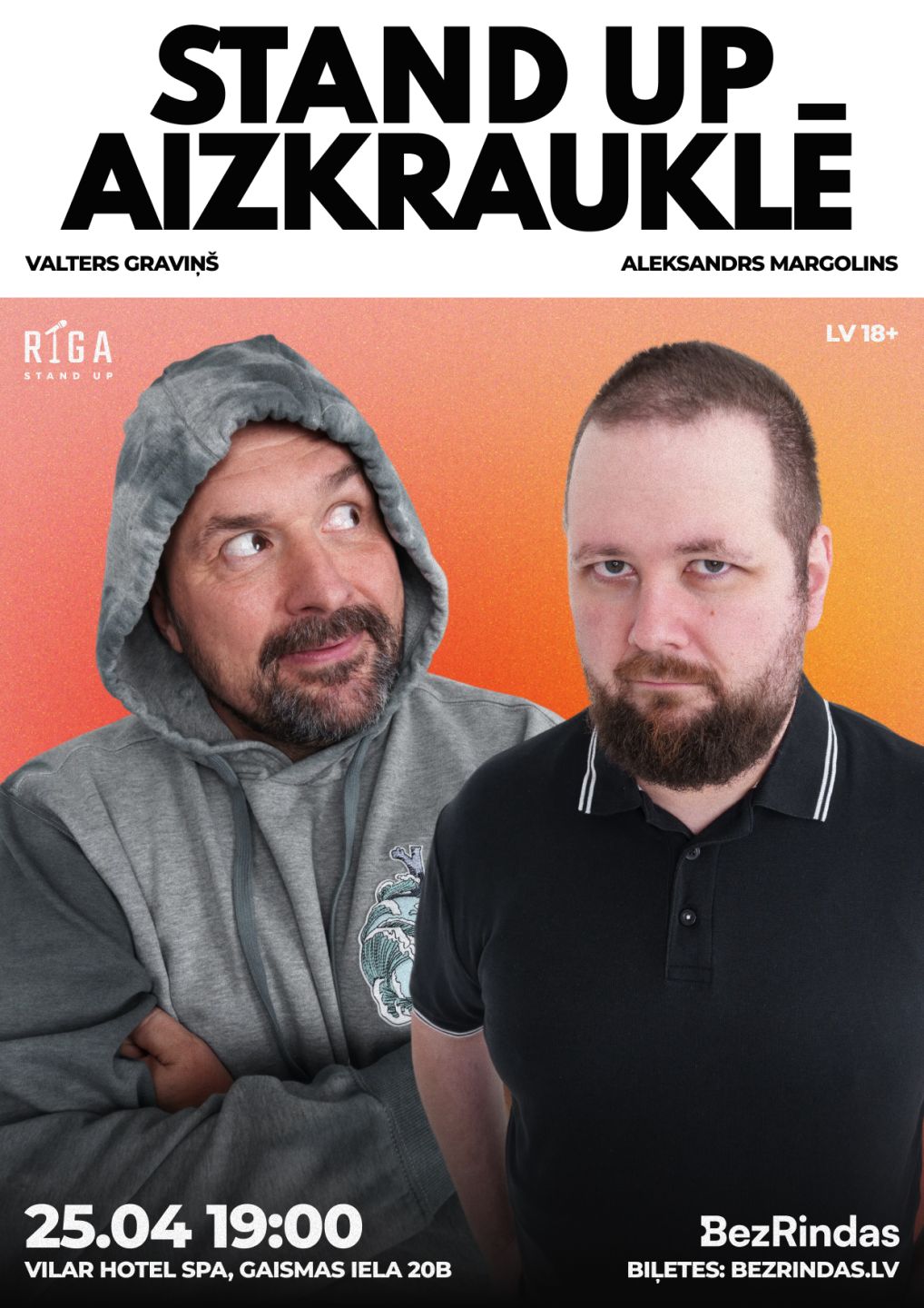 Uzstāsies spilgtākie komiķi no Rīgas Stand Up kluba: Valters Graviņš un Aleksandrs Margolins.