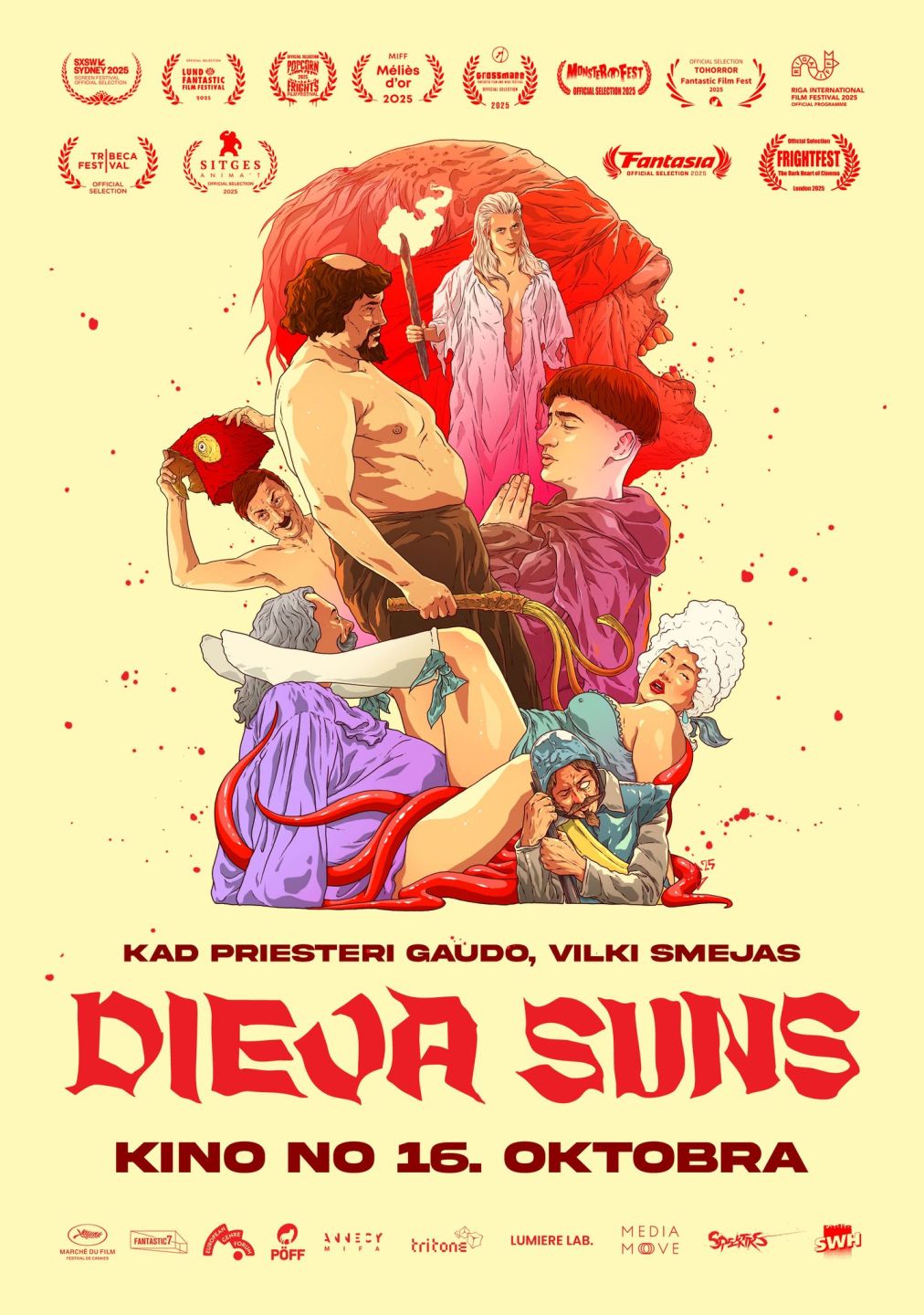 Septiņpadsmitais gadsimts, Zviedru Livonijas ciemats. Nemitīga lietus nomākti, tā Iedzīvotāji vada savas dienas sūrā darbā, kas mijas ar godbjīgiem baznīcas apmeklējumiem un ikvakara kroga vizītēm. Kad nozagta relikvija izraisa apsūdzības burvestībā, ciematā ierodas 80 gadus vecs pašpasludināts vilkatis, saukts par Dieva Suni, ar noslēpumainu dāvanu – Velna Bumbām. Tas iedarbina negaidītu notikumu virkni, kas kulminē trakulīgā ballītē, pārvēršot ciematu par nevaldāmu iekāru virpuli...